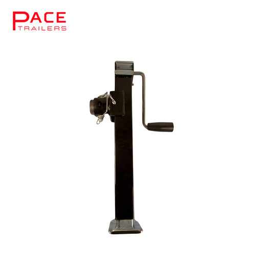 Black painted finish. Internal tube is zinc plated. Greasable gear box. Weld on Swivel bracket. Capacity: 5000 lbs or 2267 Kg.